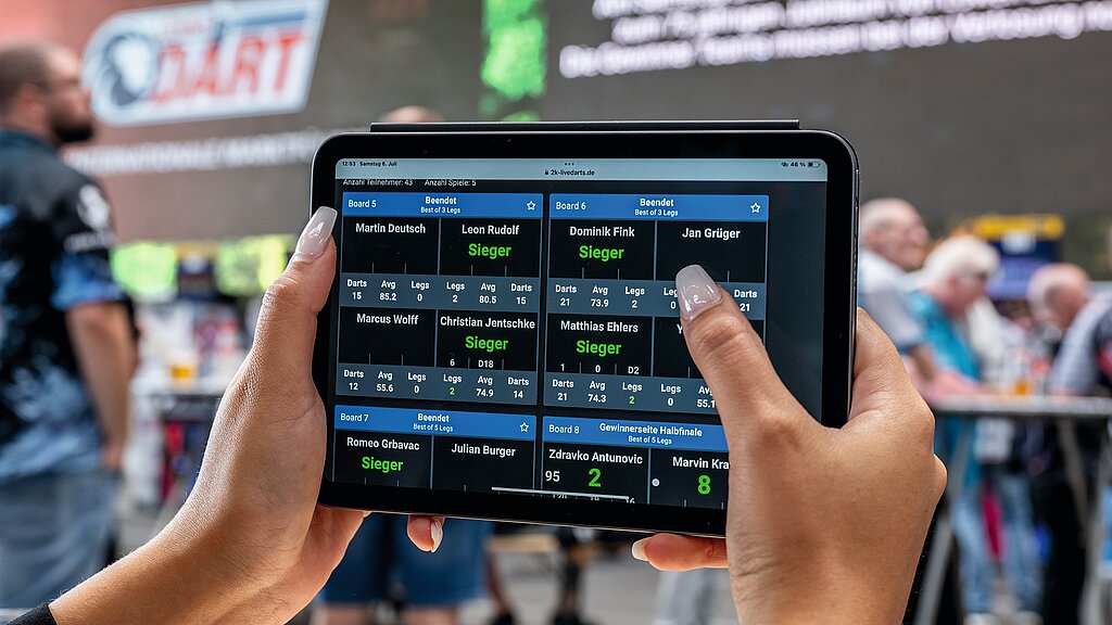 2022 kam dann der nächste Quantensprung: der LÖWEN DART HB10. Mit seinem hochauflösenden Touchscreen und der dazugehörigen LÖWEN DART-App veränderte er das Spiel erneut. Plötzlich war es möglich, was wir heute bei den Meisterschaften am Nürburgring sehen: Hunderte Automaten werden über eine Software vernetzt. Jeder Wurf wird live erfasst, die Ergebnisse fließen automatisch in die Turnierleitung ein.